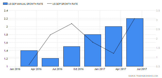 En los Estados Unidos (USA) el crecimiento interanual del PIB se ubica en el 1,20%, con tasa de política monetaria (TPM) en 0,50%, inflación del 0,80% y una tasa de desempleo del 4,90%; gestionado con un déficit fiscal del 2,50% del PIB y ratio Deuda / PIB del 104.17% y un déficit en cuenta corriente del 2,70% respectivamente.
