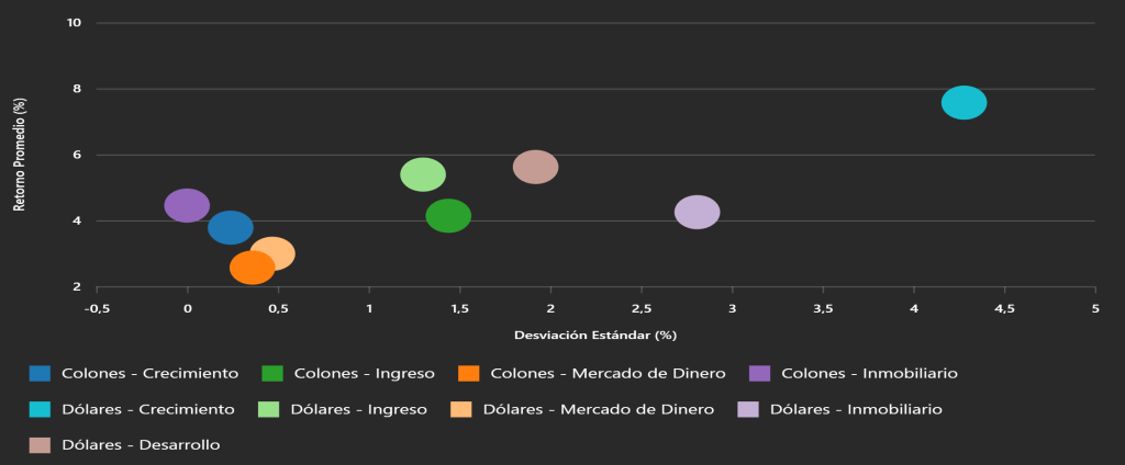 Como se muestra en la ilustración #2, la estrategia de perfil conservador reportó ganancias del 1,08%, la moderada 1,40%, la de crecimiento 1,68% y la de crecimiento agresivo 2,25%. Estrategia esta que en promedio reporta una rentabilidad del 1.60% en agosto.