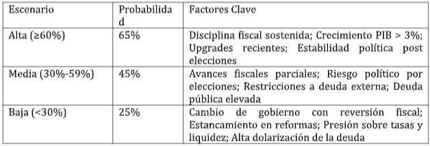 Escenarios de probabilidad para grado de inversión (2026-2027)