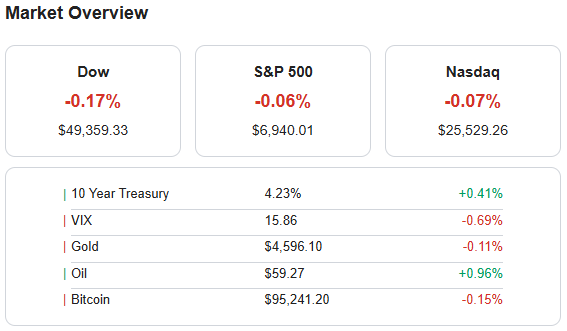 En otras noticias corporativas y políticas, OpenAI, respaldada por Microsoft (MSFT), anunció que probará la inclusión de anuncios en los niveles gratuitos y «Go» de ChatGPT. Novo Nordisk (NVO) tuvo un inicio sólido en la comercialización de su píldora Wegovy oral. En el ámbito de la vivienda, la Casa Blanca planea permitir el uso de fondos 401(k) para pagos iniciales de vivienda, una medida que, junto con la caída de las tasas hipotecarias a un mínimo de tres años (el promedio a 30 años se situó en 6.06%), está impulsando la actividad. Por su parte, Dominion Energy (D) reanudará su proyecto eólico marino Coastal Virginia, y Micron (MU) inició la construcción de su megafábrica de memoria de 100 mil millones de dólares en Nueva York.